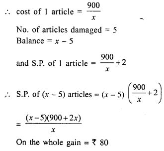 A trader bought a number of articles for ₹ 900, five were damaged and he sold each of the rest at ₹ 2 more than what he paid for it. It on the whole he gains ₹80, find the number of articles bought.