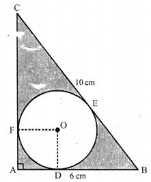 In triangle ABC, ∠BAC = 90°, AB = 6 cm and BC = 10 cm. A circle is drawn inside the triangle which touches all the sides of the triangle (i.e., an incircle of A ABC is drawn). Find the area of the triangle excluding the circle.