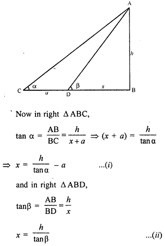 Let AB be tower and two points C and D are two points making angles of elevation with top Of tower A area and P respectively and CD = a,