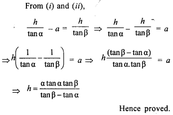 Prove that the height of the tower is : \(\frac{\alpha \tan \alpha \tan \beta}{\tan \beta-\tan \alpha}\).