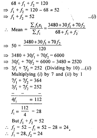 The mean of the following frequency distribution is 50, but the frequencies f1 and f2 in class 20 – 40 and 60 – 80 respectively are not known. Find these frequencies.