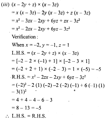 (iii) (x – 2y + z) and (x – 3z); when x = -2, y = -1 and z = 1.