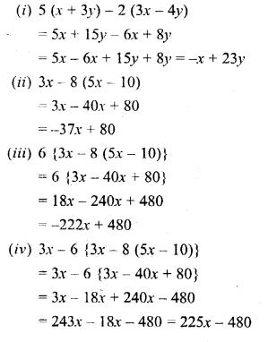 (i) 5 (x + 3y) – 2 (3x – 4y)