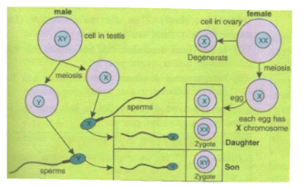 - If the egg fuses with Y-bearing sperm, the resulting combination is XY and the resulting child is male.