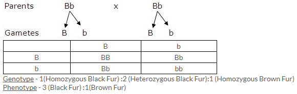 Genotypic Ratio – 1(Homozygous Black Fur):2 (Heterozygous Black Fur): 1 (Homozygous Brown Fur)