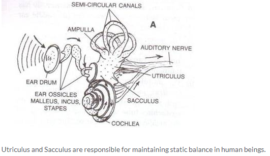(iii) Cochlea helps in transmitting impulses to the brain via the auditory nerve. Semicircular canals help in maintaining dynamic equilibrium of the body.