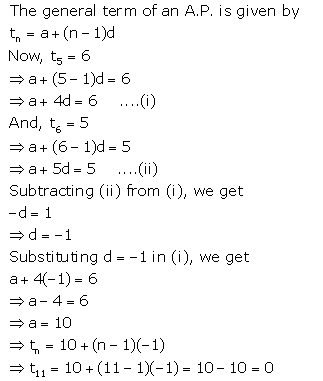 If 5th and 6th terms of an A.P are respectively 6 and 5. Find the 11th term of the A.P