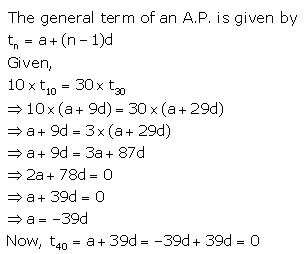 In an A.P., ten times of its tenth term is equal to thirty times of its 30th term. Find its 40th term.