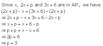 Find the value of p, if x, 2x + p and 3x + 6 are in A.P