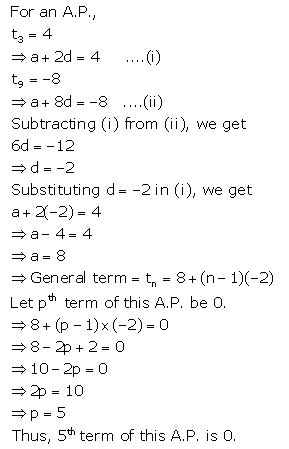 If the 3rd and the 9th terms of an arithmetic progression are 4 and -8 respectively, Which term of it is zero?