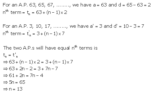 For what value of n, the nth term of A.P 63, 65, 67, …….. and nth term of A.P. 3, 10, 17,…….. are equal to each other?
