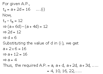 Determine the A.P. Whose 3rd term is 16 and the 7th term exceeds the 5th term by 12.