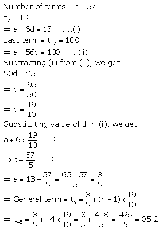 An A.P consists of 57 terms of which 7th term is 13 and the last term is 108. Find the 45th term of this A.P.