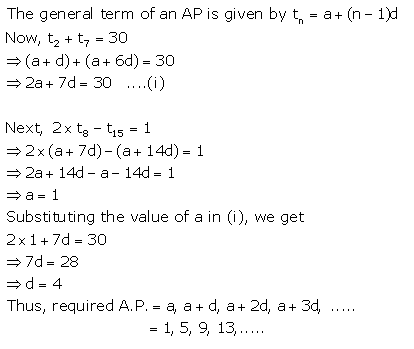 The sum of the 2nd term and the 7th term of an A.P is 30. If its 15th term is 1 less than twice of its 8th term, find the A.P
