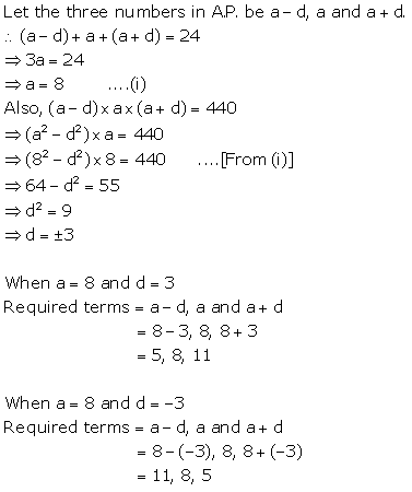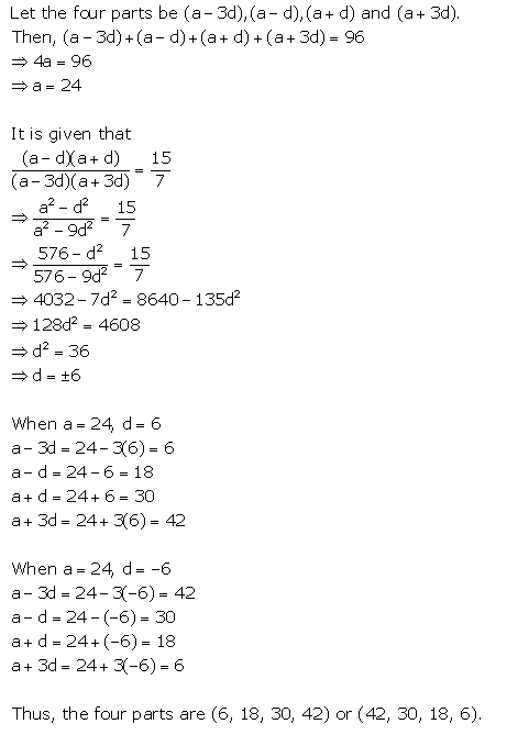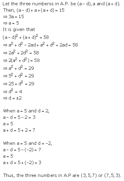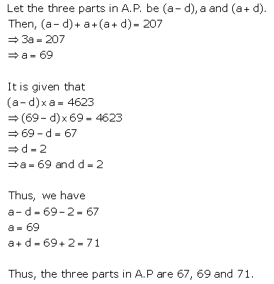 ∴ a – d = 72 – 2 = 70, a = 72 and a + d = 72 + 2 = 74