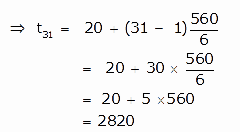 Hence, t31 = a + 30d = 7 + 30(2) = 7 + 60 = 67