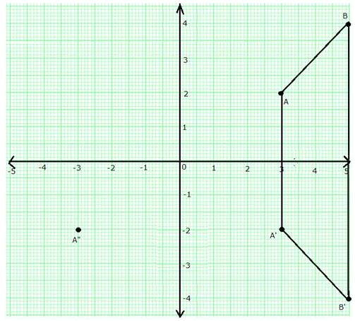 The point A (-3, 2) is reflected in the x-axis to the point A’. Point A’ is then reflected in the origin to point A”.