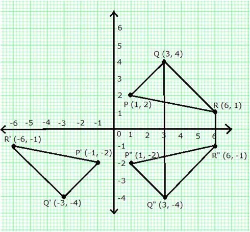 (b) The co-ordinates of P”, Q” and R” are (1, -2), (3, -4) and (6, -1) respectively.