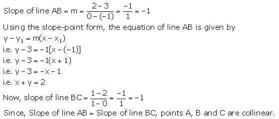 Find the equation of the line through the Points A(-1, 3) and B(0, 2). Hence, show that the points A, B and C(1, 1) are collinear.