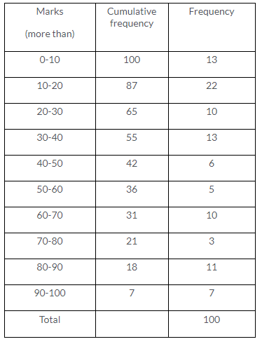Construct a frequency distribution table for the number given below, using the class intervals 21-30, 31-40 … etc.