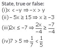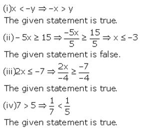 (iv) If a > b ⇒ \(\frac { a }{ c } >\frac { b }{ c }\)