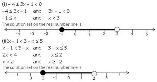 x ∈ {real numbers} and -1 < 3 – 2x ≤ 7, evaluate x and represent it on a number line.