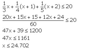 Find three consecutive largest positive integers such that the sum of one-third of first, one-fourth of second and one-fifth of third is atmost 20.