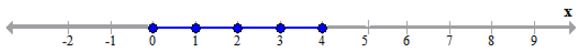 ⇒ Solution set = {0, 1, 2, 3, 4}