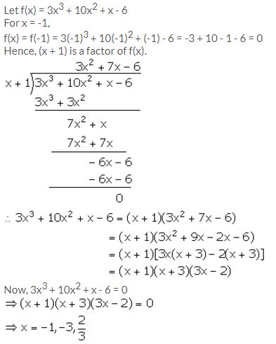 (iii) f (-2) = 2(-2)3 + 3(-2)2 – 5(-2) – 6 = -16 + 12 + 10 – 6 = 0