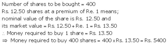 How much money will be required to buy 400, ₹ 12.50 shares at a premium of ₹ 1?