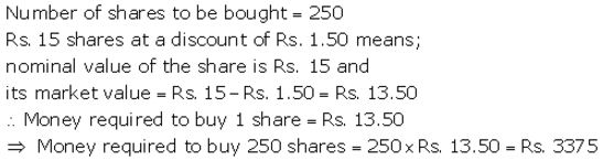 How much money will be required to buy 250, ₹ 15 shares at a discount of ₹ 1.50?