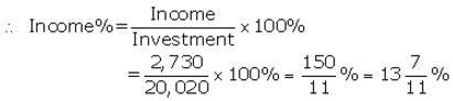 Mr.Tiwari. invested ₹ 29,040 in 15% Rs100 shares quoted at a premium of 20%. Calculate: