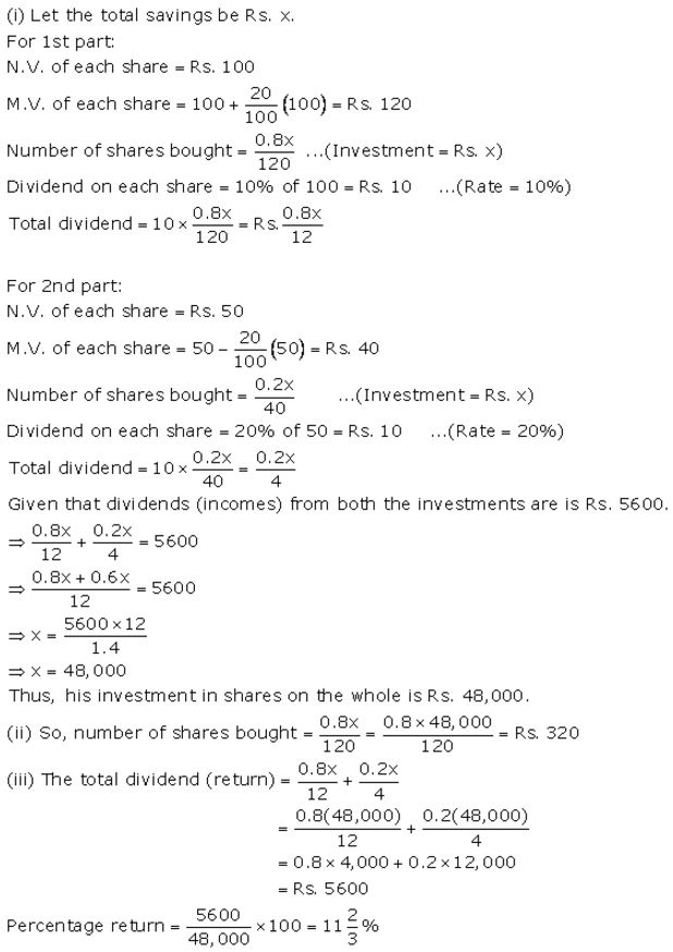 Selina Concise Mathematics Class 10 ICSE Solutions Shares and Dividends