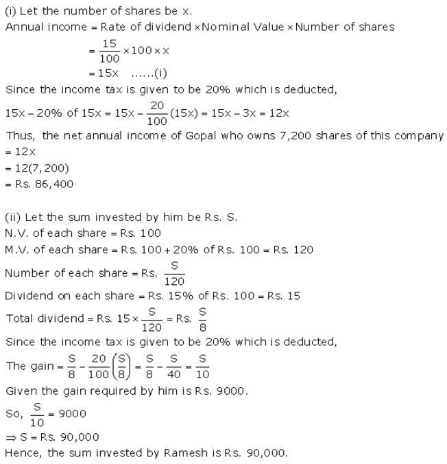 (i) Annual dividend = 650 × 8 = ₹ 5200