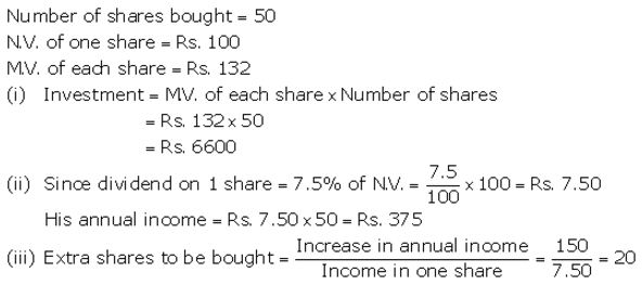 (iii) If he wants to increase his annual income by ₹ 150, how many extra shares should he buy?