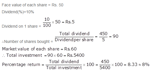 Dividend = 5% of ₹ 10 = ₹ 0.50