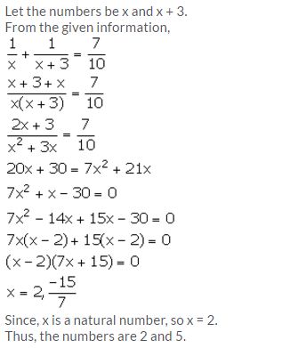 Two natural numbers differ by 3. Find the numbers, if the sum of their reciprocals is \(\frac { 7 }{ 10 }\)