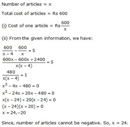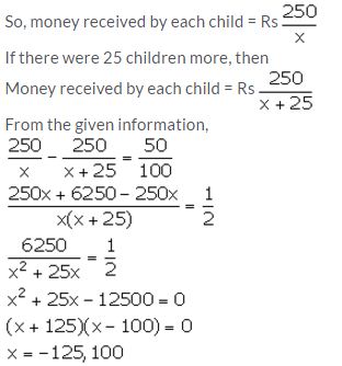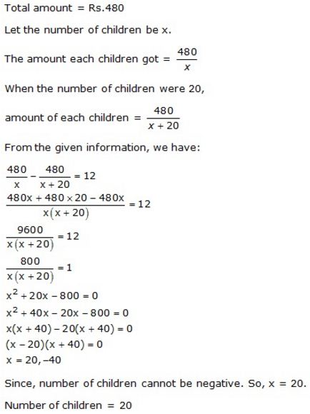 Rs.480 is divided equally among ‘x’ children. If the number of children were 20 more, then each would have got Rs.12 less. Find ‘x’.