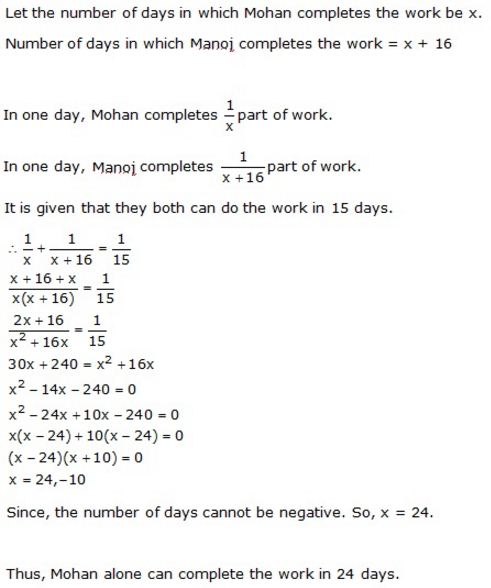 Mohan takes 16 days less than Manoj to do a piece of work. If both working together can do it in 15 days, in how many days will Mohan alone complete the work?