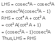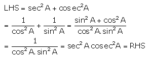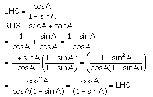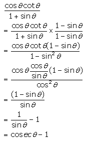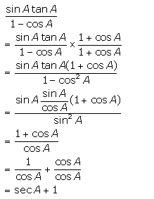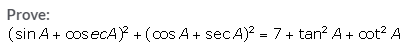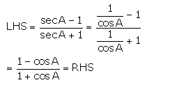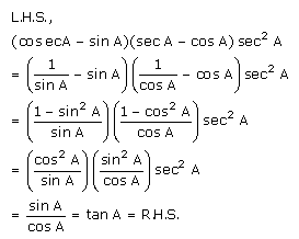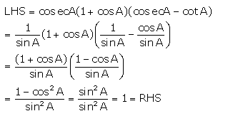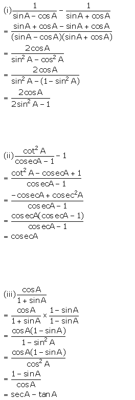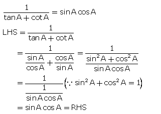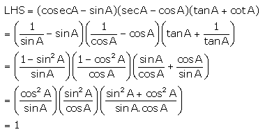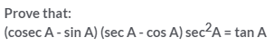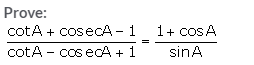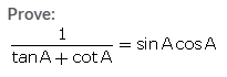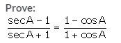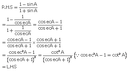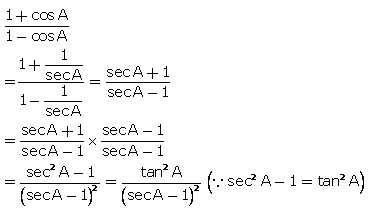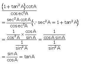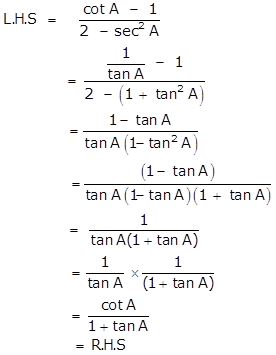 To prove that : \(\frac{\cot A-1}{2-\sec ^{2} A}=\frac{\cot A}{1+\tan A}\)