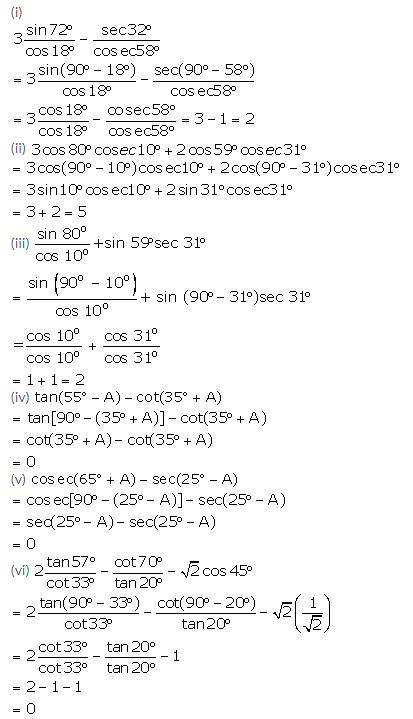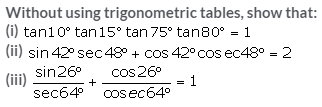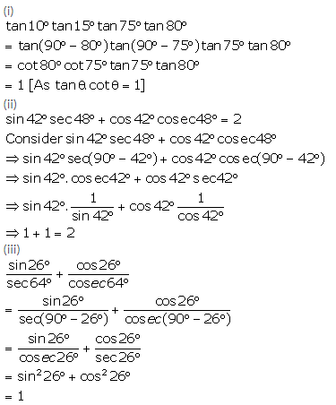 Selina Concise Mathematics Class 10 ICSE Solutions Trigonometrical Identities (Including Trigonometrical Ratios of Complementary Angles and Use of Four Figure Trigonometrical Tables)
