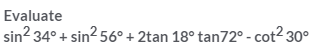 sin2 28° + sin2 62° + tan2 38° – cot2 52° + \(\frac{1}{4}\)sec2 30°