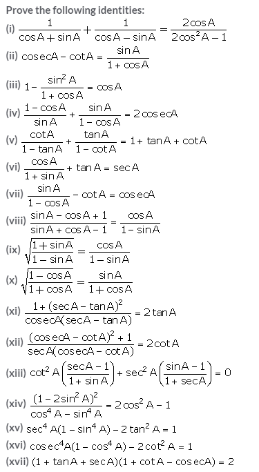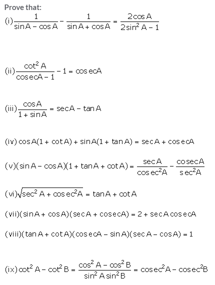 Trigonometrical Identities Exercise 21A – Selina Concise Mathematics Class 10 ICSE Solutions