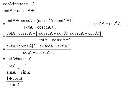 \(\frac{\cot A-1}{2-\sec ^{2} A}=\frac{\cot A}{1+\tan A}\)