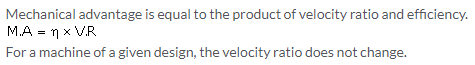 For an ideal machine mechanical advantage is numerically equal to the velocity ratio.