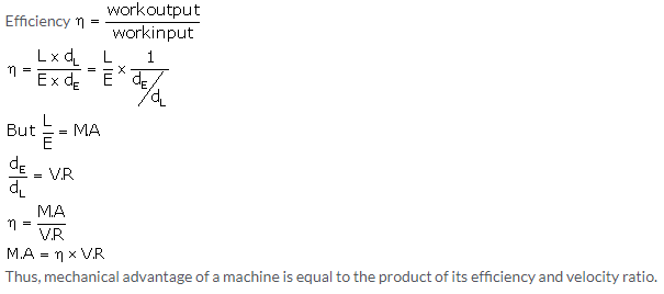 Let a machine overcome a load L by the application of an effort E. In time t, let the displacement of effort be dE and the displacement of load be dL.