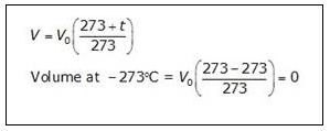 At constant pressure, the volume of a given mass of a dry gas increases or decreases by 1/273 of its original volume at 00C for each degree centigrade rise or fall in temperature.