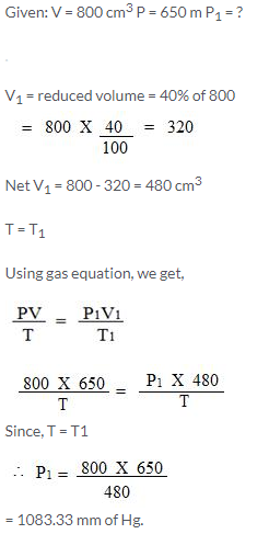 800 cm3 of gas is collected at 650 mm pressure. At what pressure would the volume of the gas reduce by 40% of its original volume, temperature remaining constant?