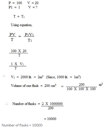 A cylinder of 20 litres capacity contains a gas at 100 atmospheric pressure. How many flasks of 200 cm3capacity can be filled from it at 1 atmosphere pressure, temperature remaining constant?