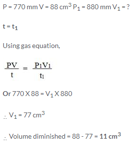 88 cm3 of nitrogen is at a pressure of 770 mm mercury. If the pressure is raised to 880 mmHg, find by how much the volume will diminish, temperature remaining constant.
